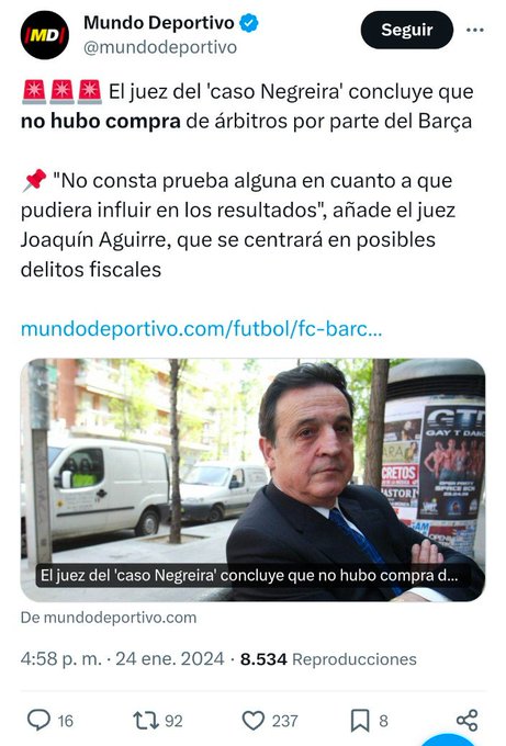 No le he leido ni un tuit de Negreira. ¿Equidistante? Ni eso.