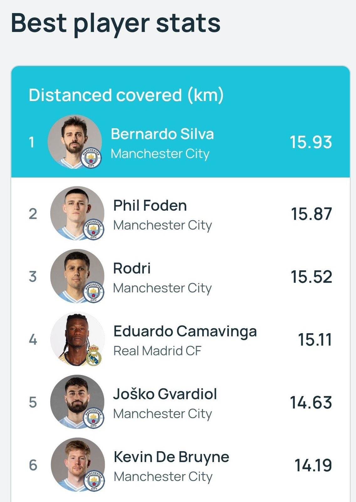 Bernardo Silva (que lleva 2 meses con la misma agilidad y velocidad que Hazard 2021) corriendo más que Camavinga, y más fresco.
