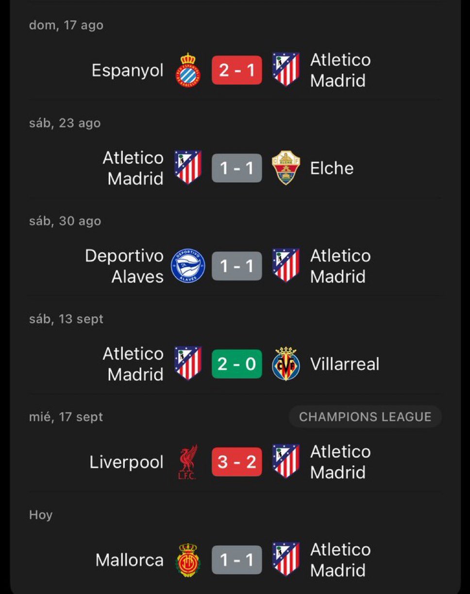 Le acaban de empatar Alaleti 😭 que malísimos son, todo lo que no sea meterles 3 el fin de semana es que hacemos el peor partido de la temporada.