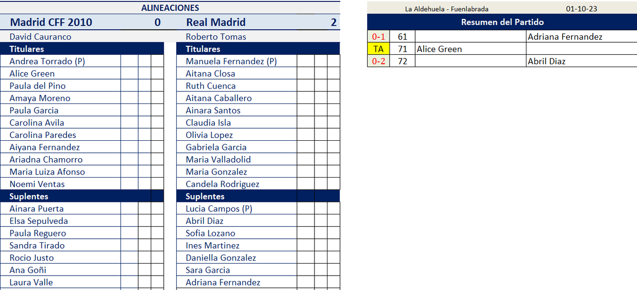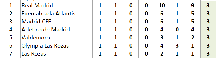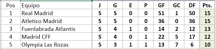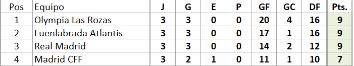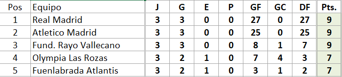 Futbolellas-Torrejon (3-0-2) - Real Madrid (5-0-0)