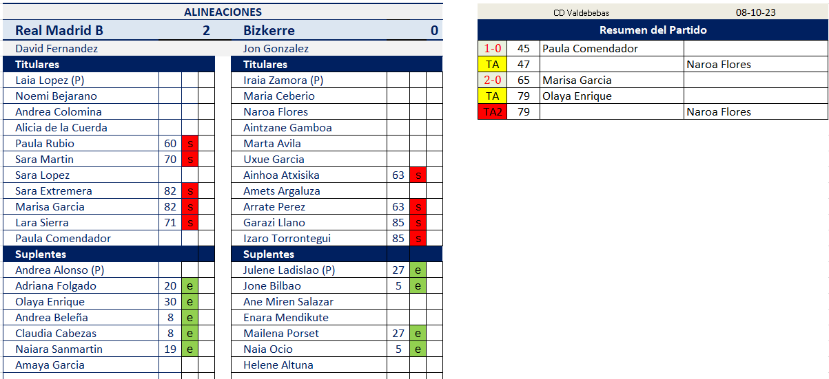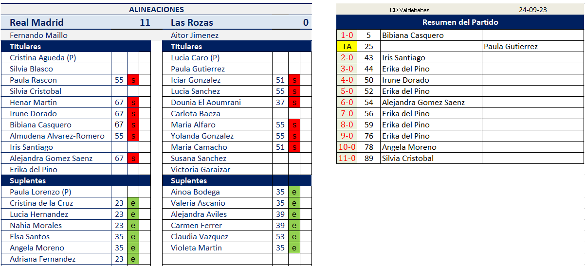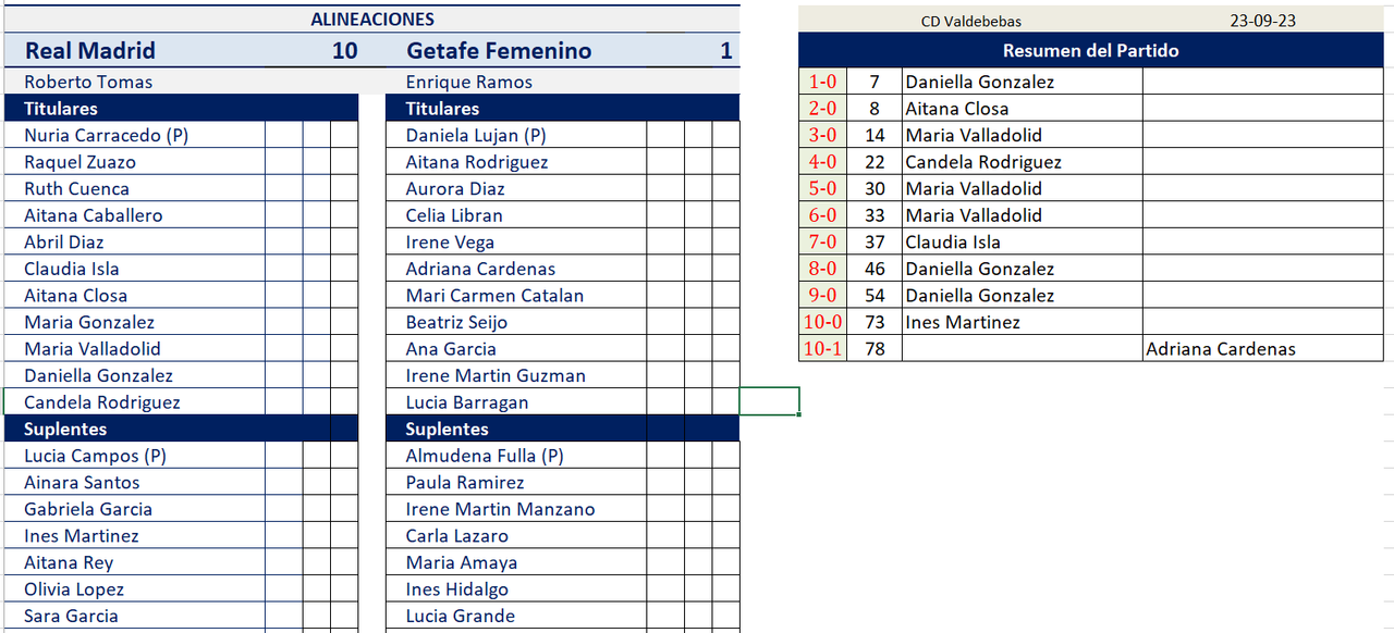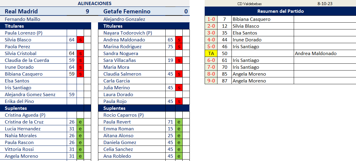 Angela Moreno (3), Iris Santiago (5), Bibiana Casquero, Alejandra Gomez (3), Irune Dorado (2) y Elsa Santos
