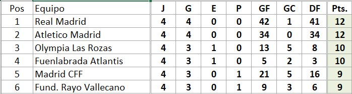 Real Madrid (4-0-0) - Getafe Femenino (1-1-2)