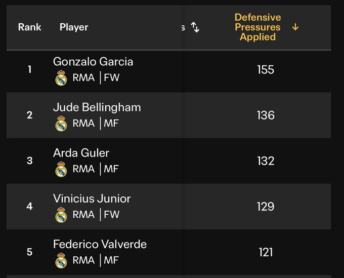 Aquí se ve que están corriendo y presionando mucho los de arriba:@the doctor Habrá que confiar en la redención de Asencio y en qué Mbappé salga en la segunda parte por Vinícius porque hoy Gonzalo es imprescindible.