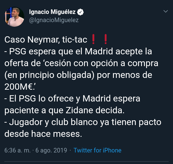 @javi_1984 Yo pienso lo mismo, si le dan a elegir iría al barça si la opción para salir del psg es el madrid vendría sin problemas, lo que está claro o eso creo es que si el madrid no cierra a pogba aparte de van de beek llegará uno mas, o eriksen o si realmente se pone a tiro neymar neymar.