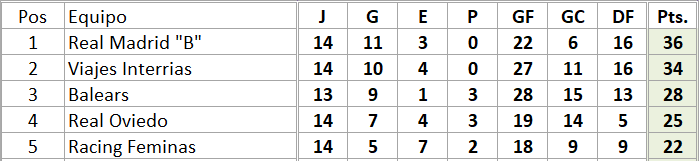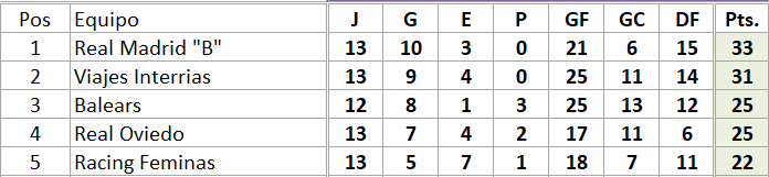 Real Madrid B (10-3-0) - Pradejon (5-2-6)