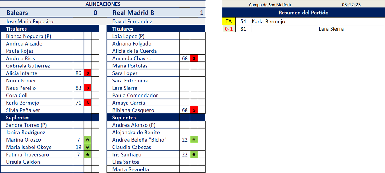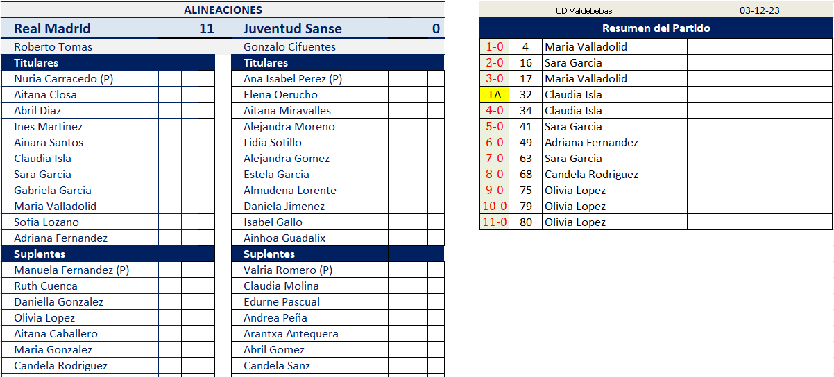 Victoria por 6-0 Maria Valladolid (2), Olivia Lopez, Daniella Gonzalez (2) y Sara Navarro