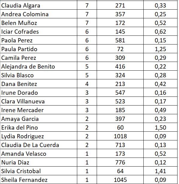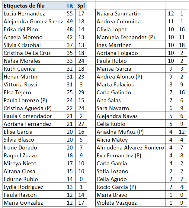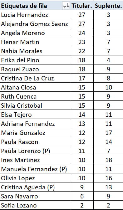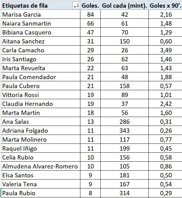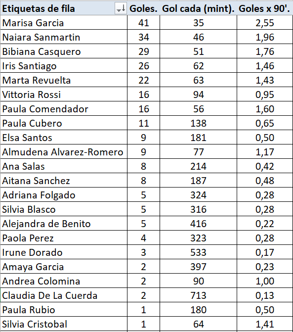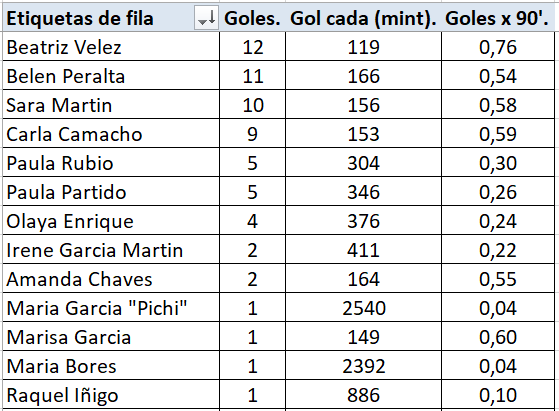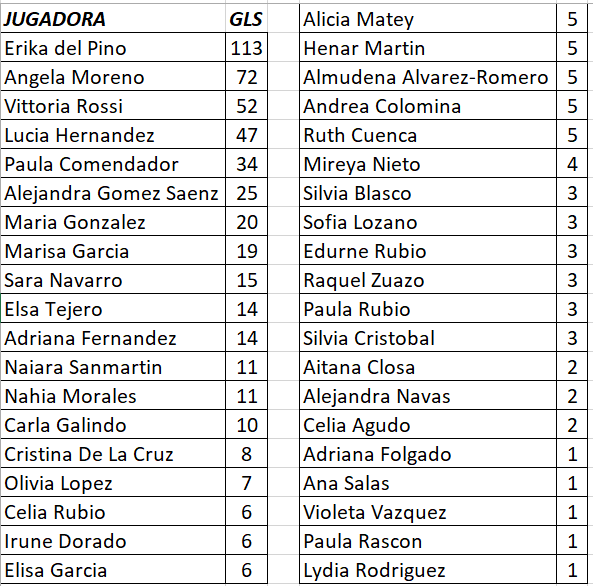 Y asi queda el historico de goleadoras en categoria juvenil