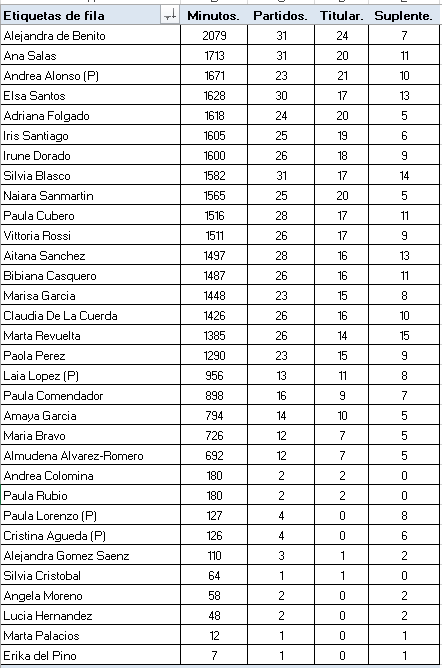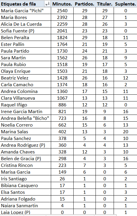 Como en cateoria cadete no se compatibilizan los minutos, partidos salidos como titular o suplente