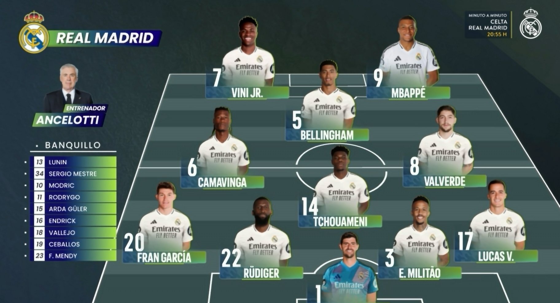 Primer cambio Rodrigo, segundo Modric y minuto 80 Arda Güller. Minutos de la basura para Ceballos y Endrick.