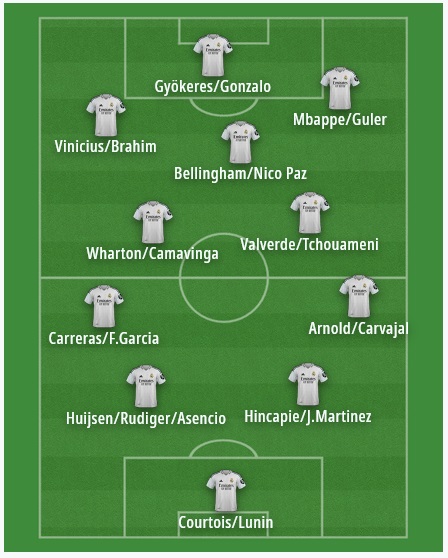 @Neozeon creo que los tiros van bastante por ahi, unicas pegas que dudo puedas colocar a Mendy, aunque en ese sistema, lo prefiero antes que a Fran Garcia y algo parecido con Ceballos, que tampoco tengo tan claro que Nico paz sea mejor que este en esa posición. Por lo demas, me parece muy realista ese equipo, no tengo tan claro que vaya a jugar un 3-5-2, Alonso ha jugado asi en el Leverkusen porque ahi tiene a Frimpong y Grimaldo y resulta obvio.