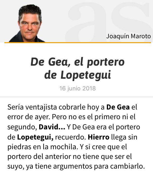 Él mismo es. Yo entiendo que AS te encargue ser el Roncero del Atleti, o sea, un tipo que simplemente es fanático absoluto de su club. No tiene personalidad, principios in raciocinio propio. Pase es un trabajo, alguien tiene que hacerlo, es como un actor con un personaje. Si te toca hacer de Hitler, pues lo haces a cabalidad, como un profesional y esto no quiere decir que seas nazi. Pero es que nadie le pide o exige a Manolete meterse en estos saraos de fichajes. Lo hace porque él quiere. De nuevo, lo entiendo: te gusta ese mundo, no quieres sentir que te has quedado sólo de caricatura de reportero, te sientes realizado como un tipo cuyas fuentes no fallan... y todo lo que quieras. Pero, macho, que llevas años en este juego y no aciertas, por pura Ley de Probabilidades tendrías que haber acertado una cuentas ya, y nada, la credibilidad que debería ser tu mayor bien, arrastrada por el piso. Ya hay Internet, la gente tiene la hemeroteca a mano desde su móvil, no es complejo ver cuántas veces metes la pata, por favor.