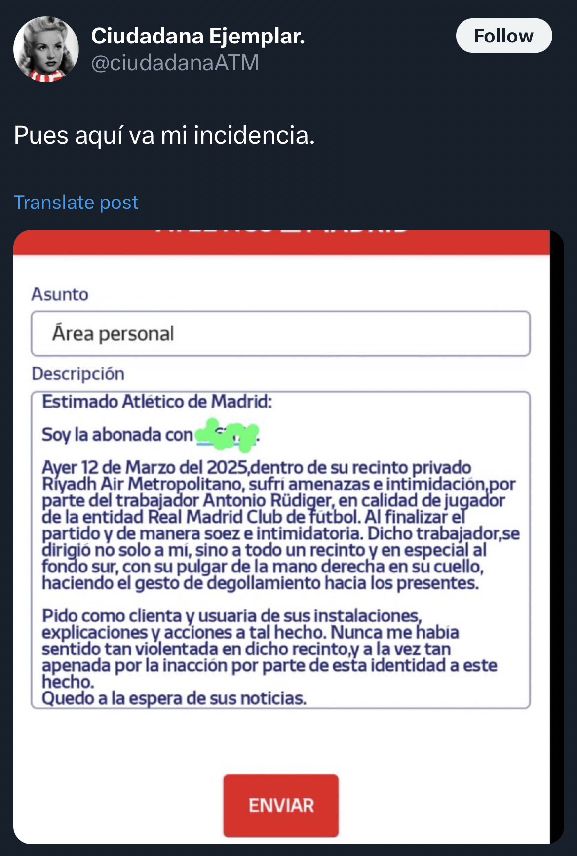 A ver en serio creo que la cosa se va de madre y todo por la prensa, se está escuchando que deberían pedir la repetición del partido a un tal toni roca en el AS diciendo que si fuese el atlético impugnaria el partido, al atlético de madrid decir que han jugado con la ilusión de miles de aficionados a otros como kiko tildar lo del penalti como una auténtica vergüenza a la prensa argentina hacer portadas “manos arriba…”porque como Julián Alvarez es argentino le tienen que apoyar , a iturralde buscando de debajo de las piedras normas para dar por error la anulación del penalti de Julián, primero decía que no había visto una toma real donde se viese que Julián tocaba 2 veces el balón (hasta el mismo agüero en directo se percató de ese echo y se lamentó del doble toque de Julián), cuando la UEFA pone una imagen clara iturralde pasa al plan b diciendo “ Lo importante es la literalidad de la regla 14 de IFAB. ¿El balón está en juego o no está en juego? Y si la leemos el balón estará en juego en el momento en que se golpee y se desplace con claridad”, luego tenemos a gente diciendo que la imagen que enseña la UEFA podría estar manipulada, todo esto está pasando por una jugada que está bien anulada imaginaros si hubiese habido alguna jugada polémica contra ellos, porque de la posible expulsión a lenglet no se dice nada de la mano de guliano tampoco, yo soy madridista y me pongo en la piel del aficionado atlético y me daría rabia quedar eliminado así porque es un infortunio es mala suerte, como si se resbala bellingham y la echa fuera pues es una putad@, pero ya está fueron 120 minutos o si lo extendemos a la ida son más de 200 minutos donde no consiguieron eliminarnos nos vamos a la tanda y ganamos, ya está es fútbol.